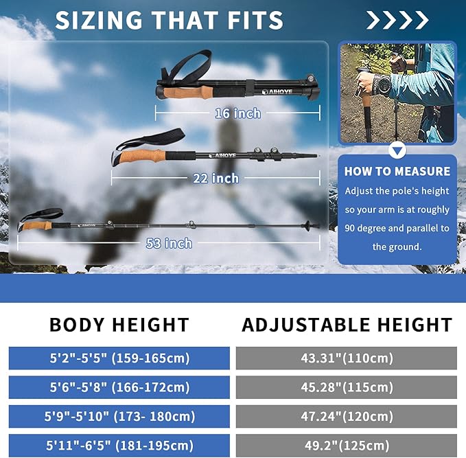 - Comfortable Cork Grips- Anti-Slip Cork Grips Provide Extra Comfort, It Resists Moisture From Sweaty Hands, Keep Hands Cool And Dry, Decreases Vibration With Each Step And Best Conforms To The Shape Of Your Hands. The Handle Has An Adjustable Padded Strap To Ensure A Better More Comfortable Grip. The Extended Foam Handles Is Convenient To Adjust Your Grip When The Terrain Changes